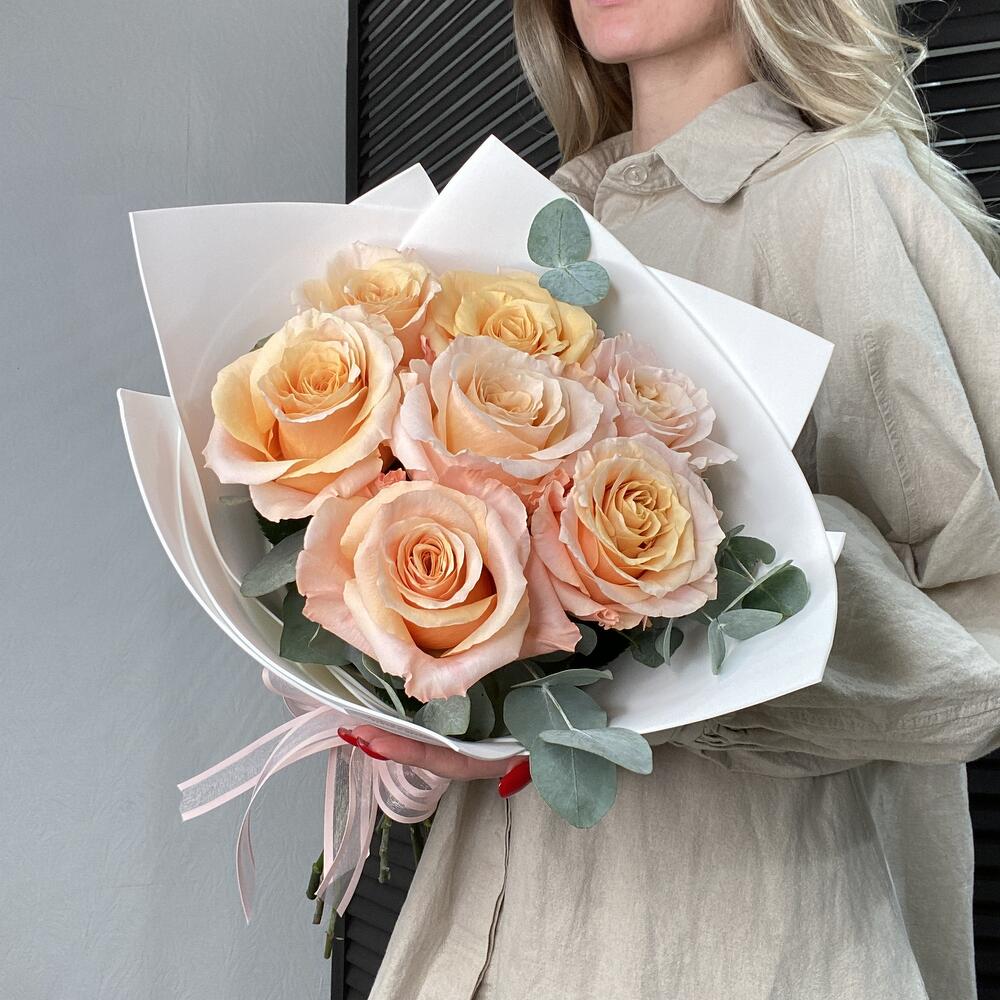 Букет из 7 роз и эвкалипта
