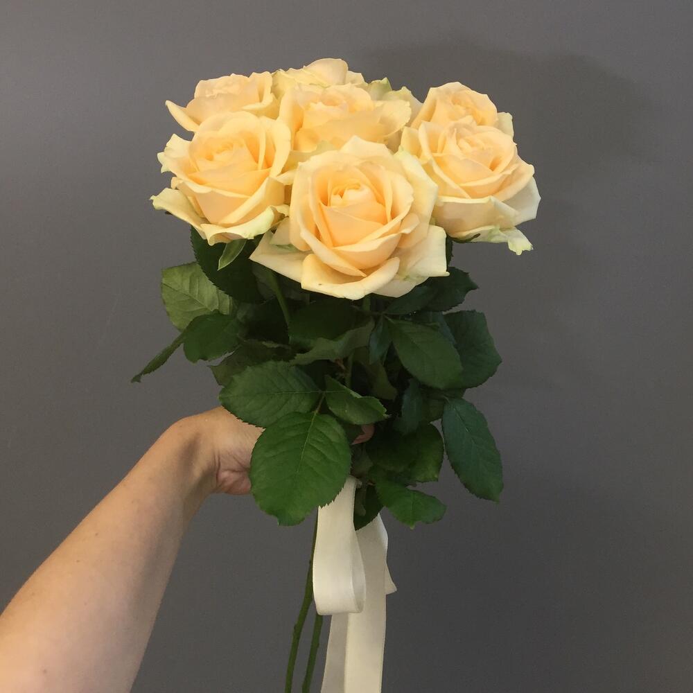 Роза аваланж пич 50 см – 7 шт.Лента атласная – 1 шт.Аквабокс – 1 шт.коробка транспортировочная – 1 шт.