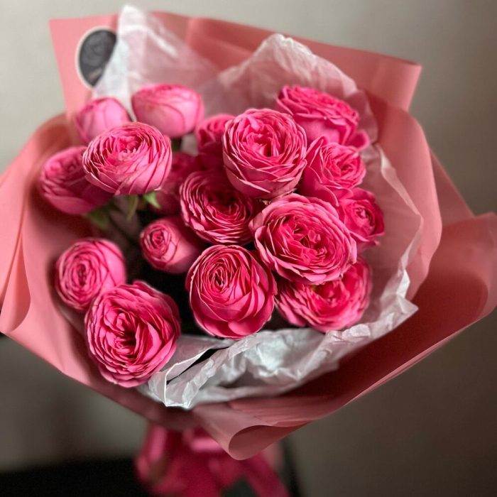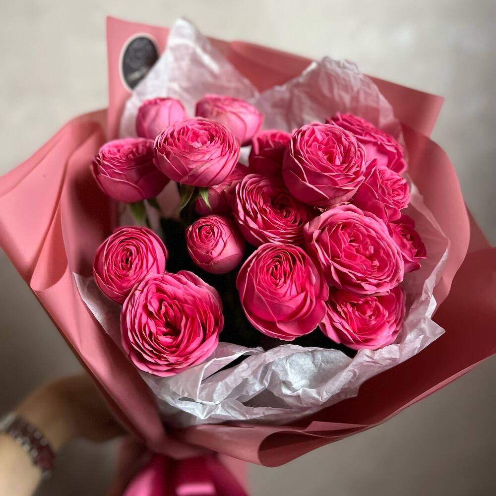 кустовая пионовидная роза giselle – 3 шт.декоративная упаковка – 2 шт.Атласная лента – 1 шт.