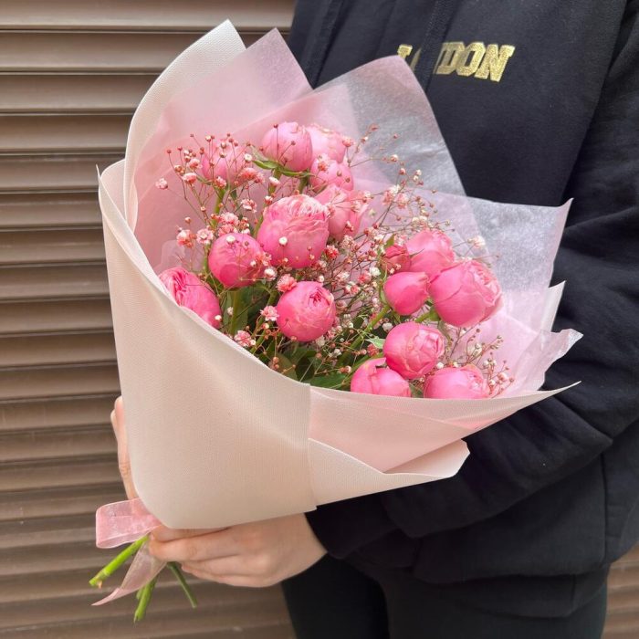 Гипсофила – 2 шт.Пленка матовая – 1 шт.сильва пинк кустовая роза – 3 шт.