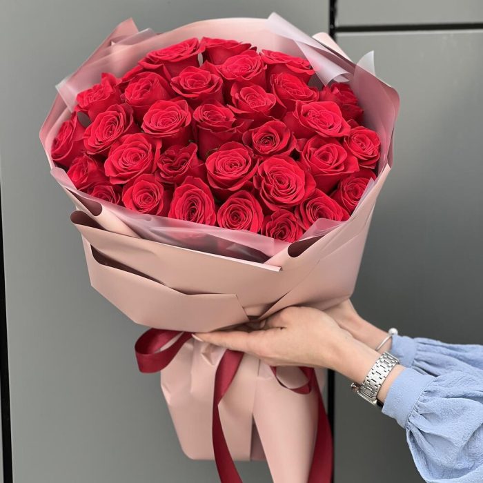 Роза красная – 31 шт. Оформление – 1 шт.
