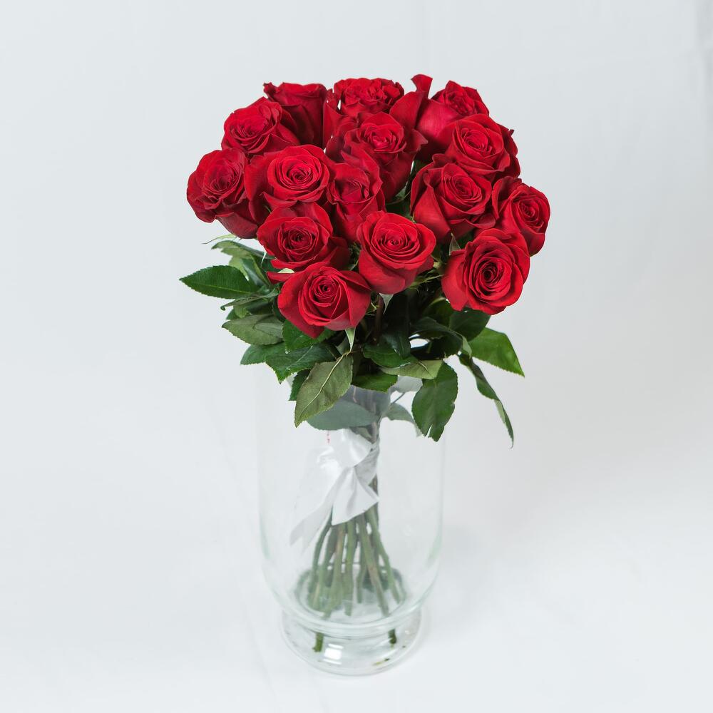 Роза Эквадор – 15 шт.Пленка прозрачная – 1 шт.Лента атласная – 1 шт.