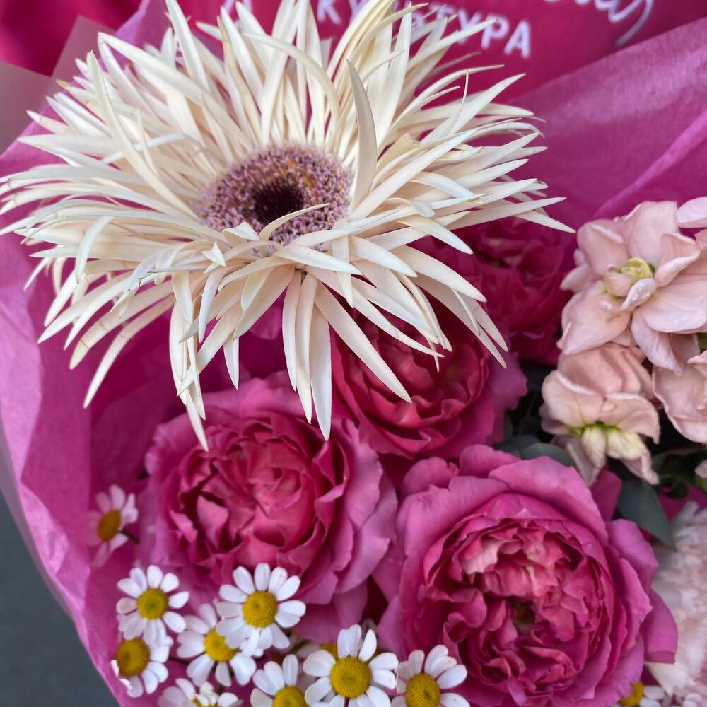 Категорий: Гвоздики, Герберы, Кустовые розы, Пионовидные розы, Розы