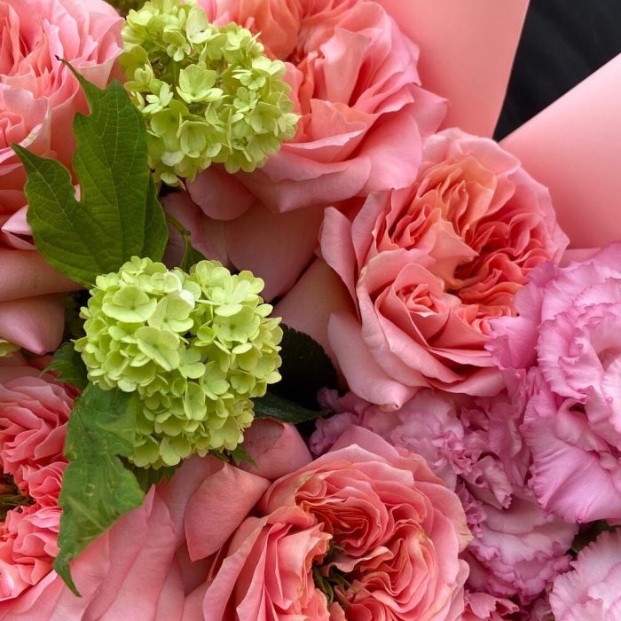 “Эвкалиптическая роскошь” гортензия и пионовидная кустовая роза