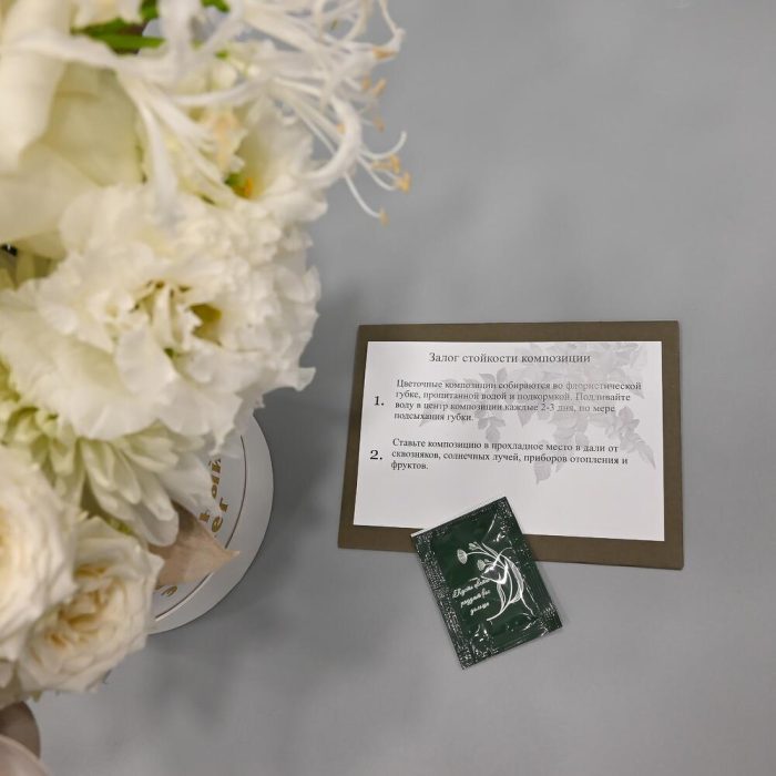 - Сроки возврата: Претензии по качеству букета принимаются в течение 24 часов с момента его получения.