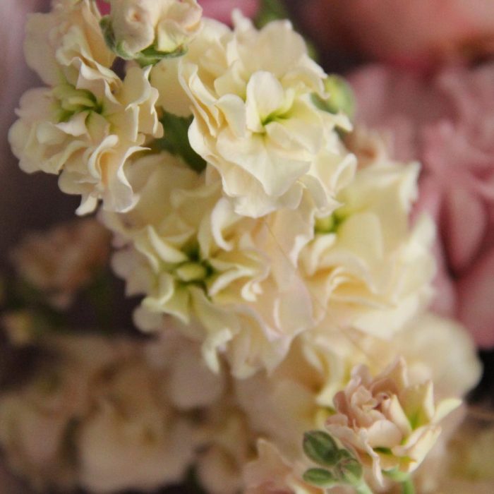 Роза пионовидная кустовая – 2 шт.Маттиола – 3 шт.Лизиантус – 4 шт.Гвоздика – 4 шт.Хиперикум – 2 шт.Ковыль – 2 шт.Эвкалипт – 7 шт.Тишью – 2 шт.Крафт – 2 шт.Лента атласная – 1 шт.