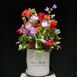 Альстромерия – 3 шт. Статица – 3 шт. Роза – 5 шт. Эустома – 8 шт. Клематис – 5 шт. ветки декоративные – 10 шт.