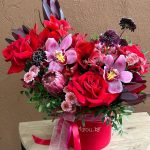 Страстная Алая коробка только для самых искушенных, ценящих роскошь и эстетику людей. Очень экстравагантная с экзотическим цветами, абсолютно не банальная композиция. Производит «вау» впечатление с первого взгляда !