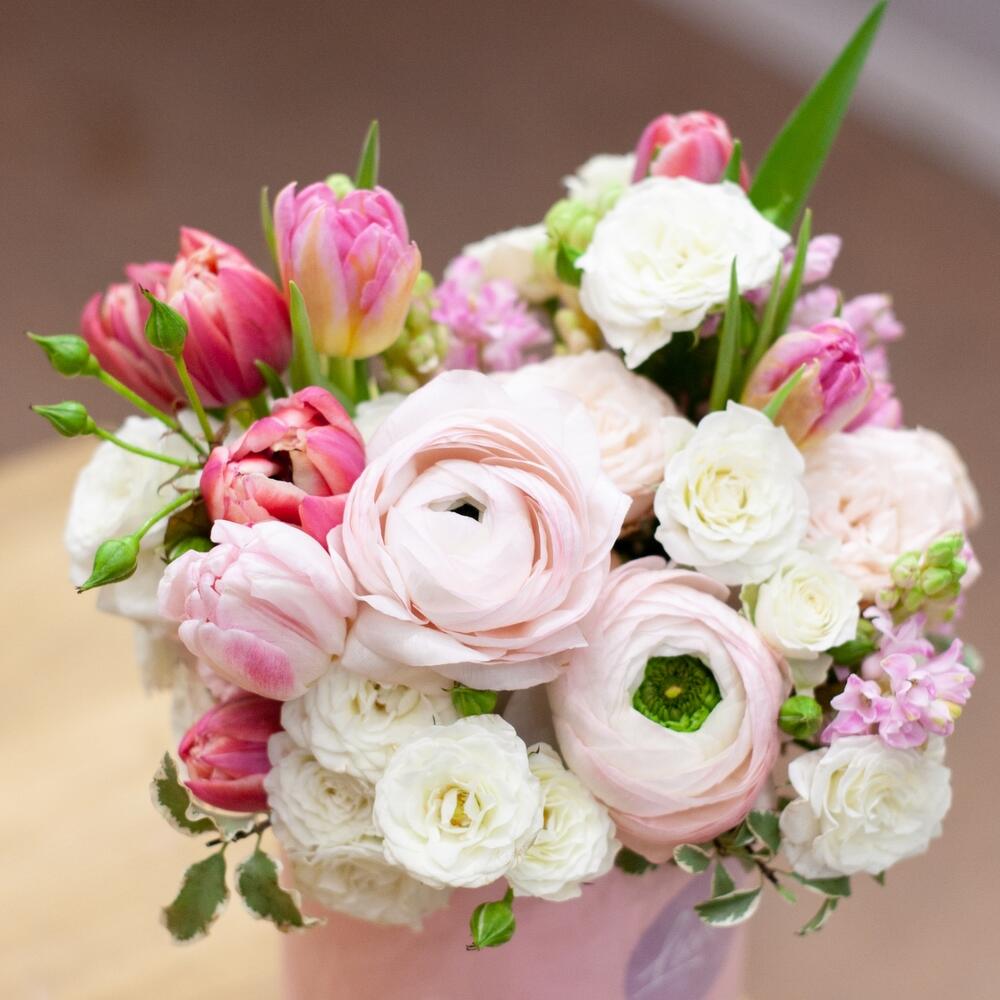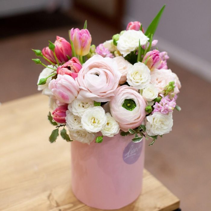 Цветы в шляпной коробке “Зефир”