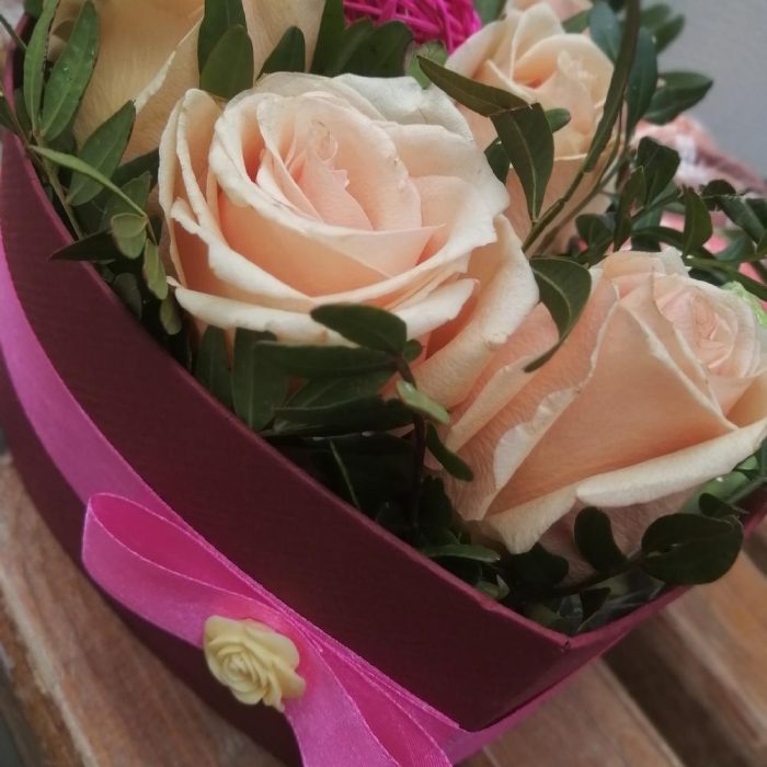 “Сладкое сердце ” – цветочная композиция с сладостями в коробке “Сердце”