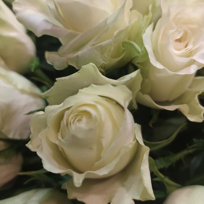 Роза белая – 255 шт.Корзина плетеная – 1 шт.Оазис флористический – 6 шт.