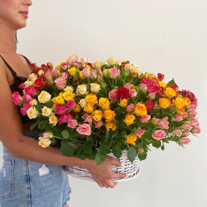 Корзина с кустовыми розами