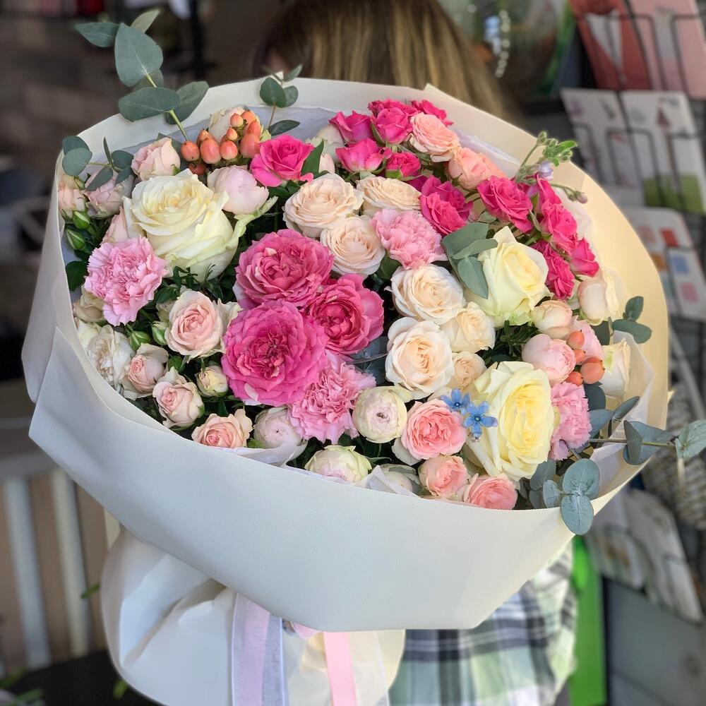 Категорий: Кустовые розы, Лизиантусы, Пионовидные розы, Розы, Хризантемы