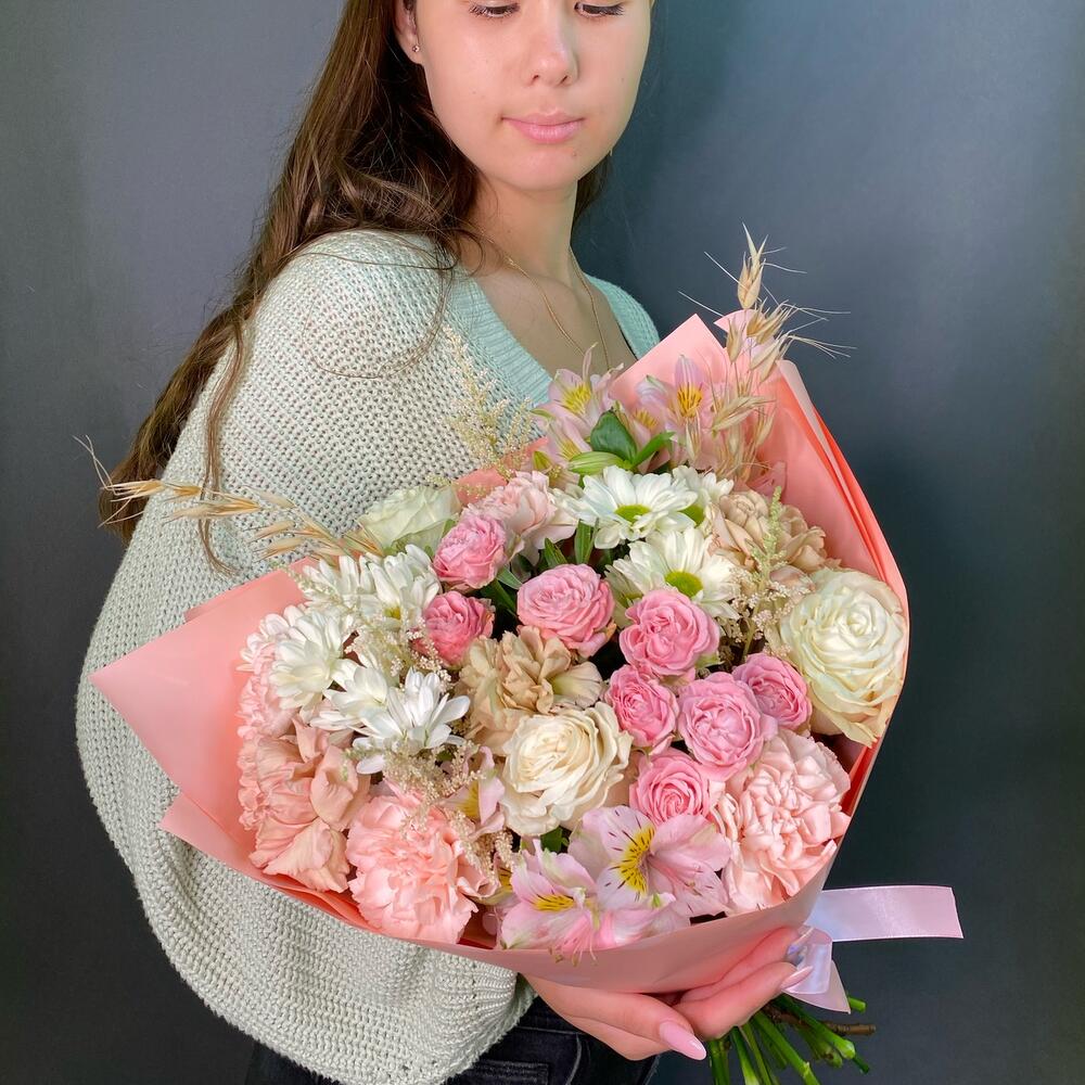Категорий: Альстромерии, Гвоздики, Кустовые розы, Розы, Хризантемы