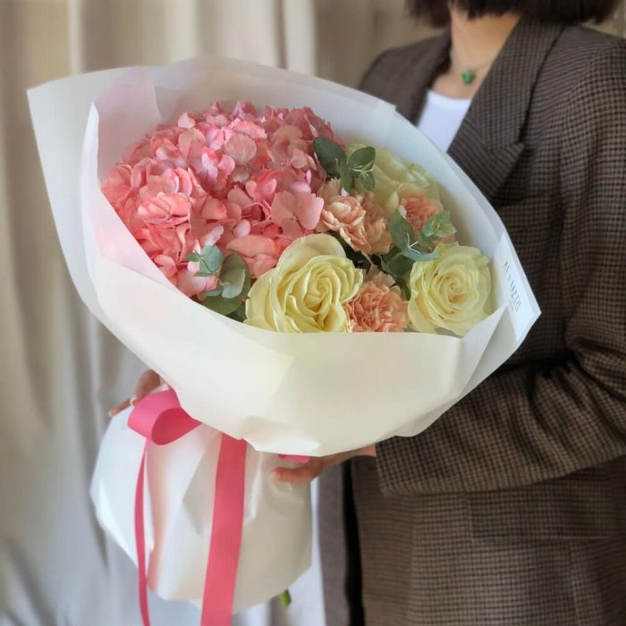 Гвоздики, Кустовые розы, Пионовидные розы, Розы