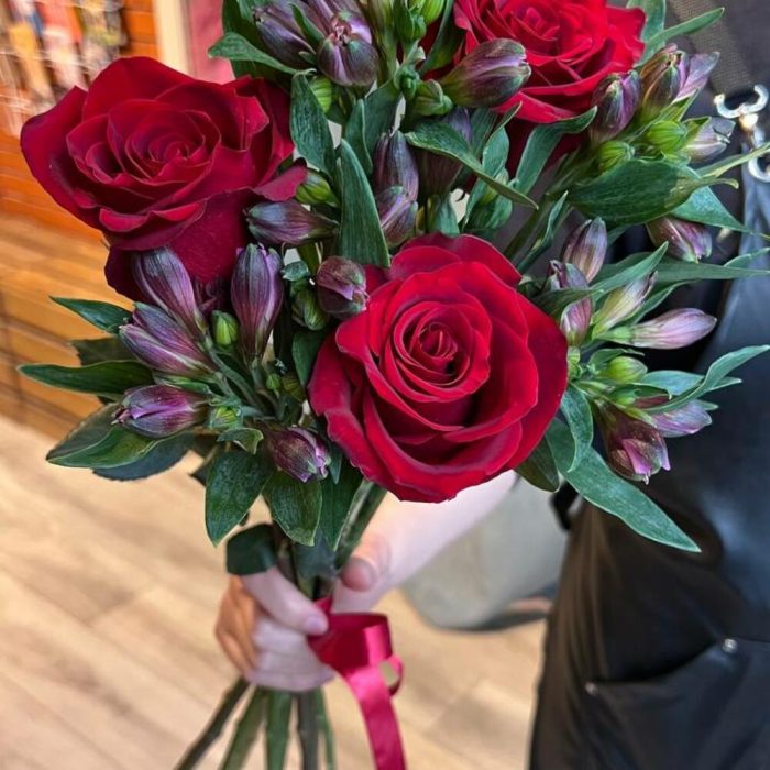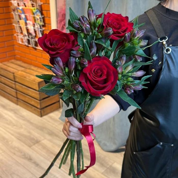 Роза эквадор 50 см – 3 шт.Альстромерия – 5 шт.