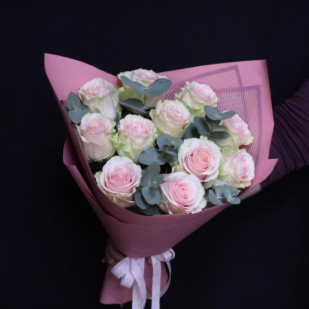 mono bouquet 67 из 11 роз сорта frutetto с эвкалиптом