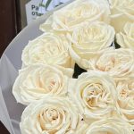 белая пионовидная роза – 15 шт.Упаковка матовая пленка – 3 шт.Лента атласная – 1 шт.Кризал (подкормка) – 1 шт.