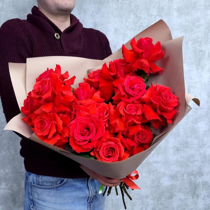 Роза красная – 15 шт.Упаковка дизайнерская – 1 шт.
