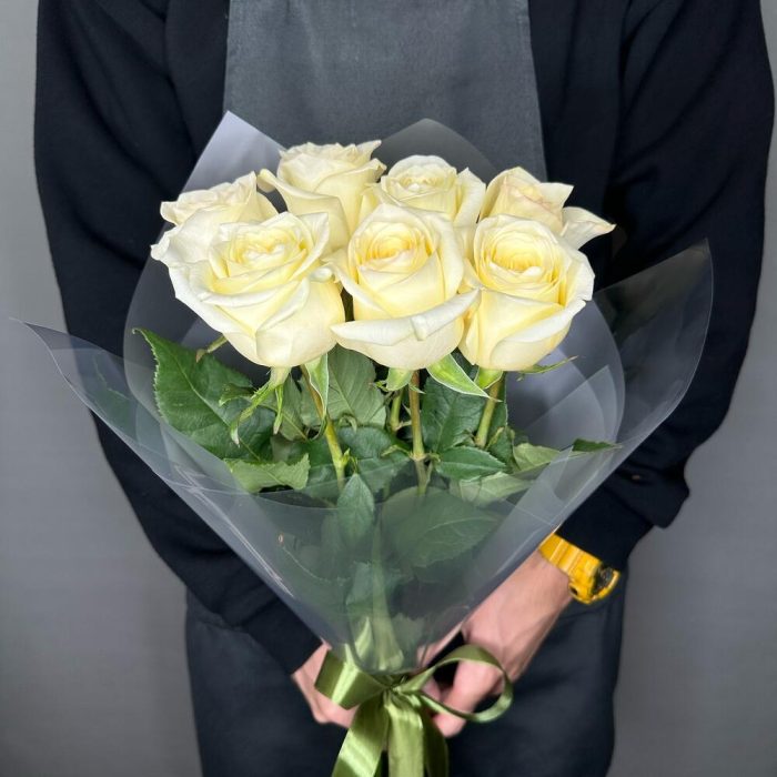 Монобукет из 7 ароматных роз в оформлении “Принцесса сердца”
