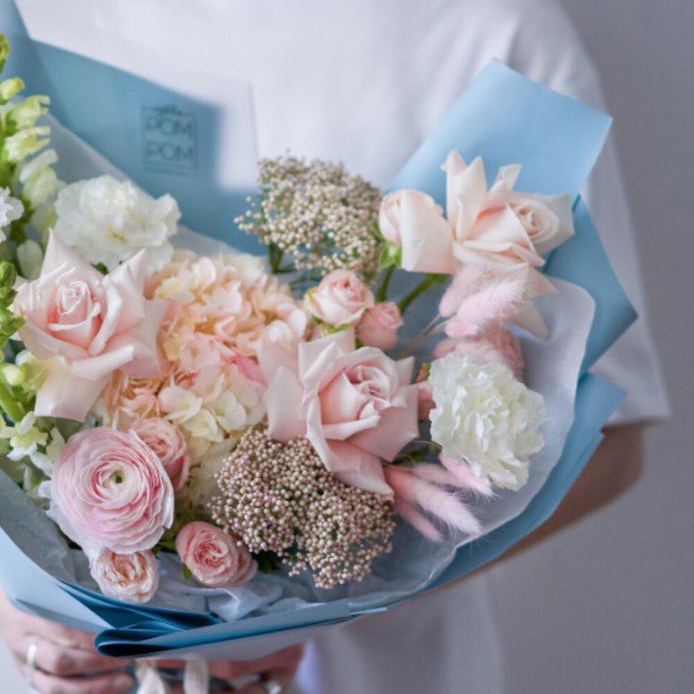 Категории: Гвоздики, Гортензии, Розы, Сухоцвет