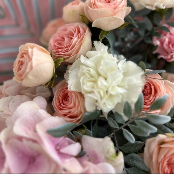Категории: Гвоздики, Гортензии, Кустовые розы, Розы