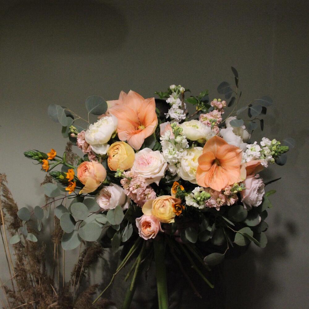 Персиковый - Букет с пионами, ранункулюсами и амариллисами