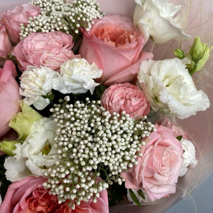 Категорий: Гвоздики, Кустовые розы, Лизиантусы, Пионовидные розы, Розы