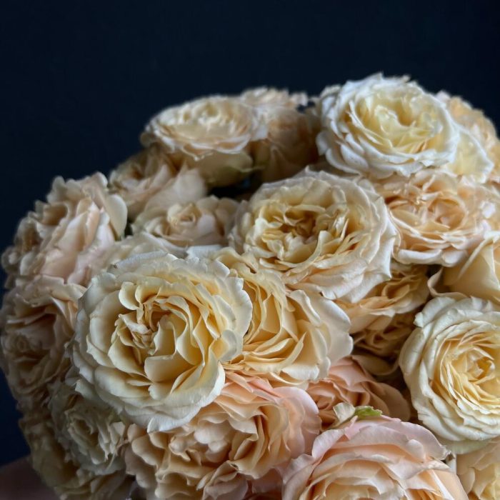 Моно букет из ароматной розы сорта Сахара в песочных оттенках станет прекрасным дополнением любого интерьера