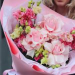 Рассвет в июне - Букет с пионовидными розами и маттиолой
