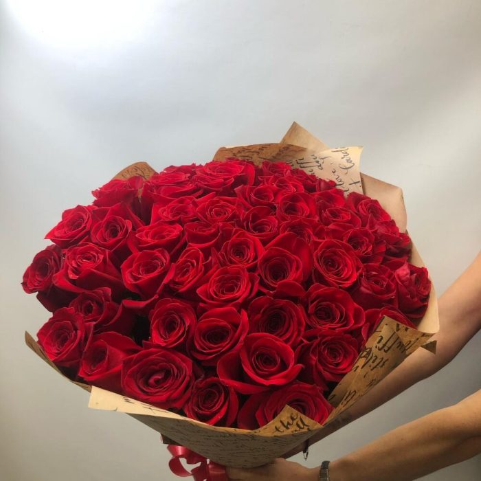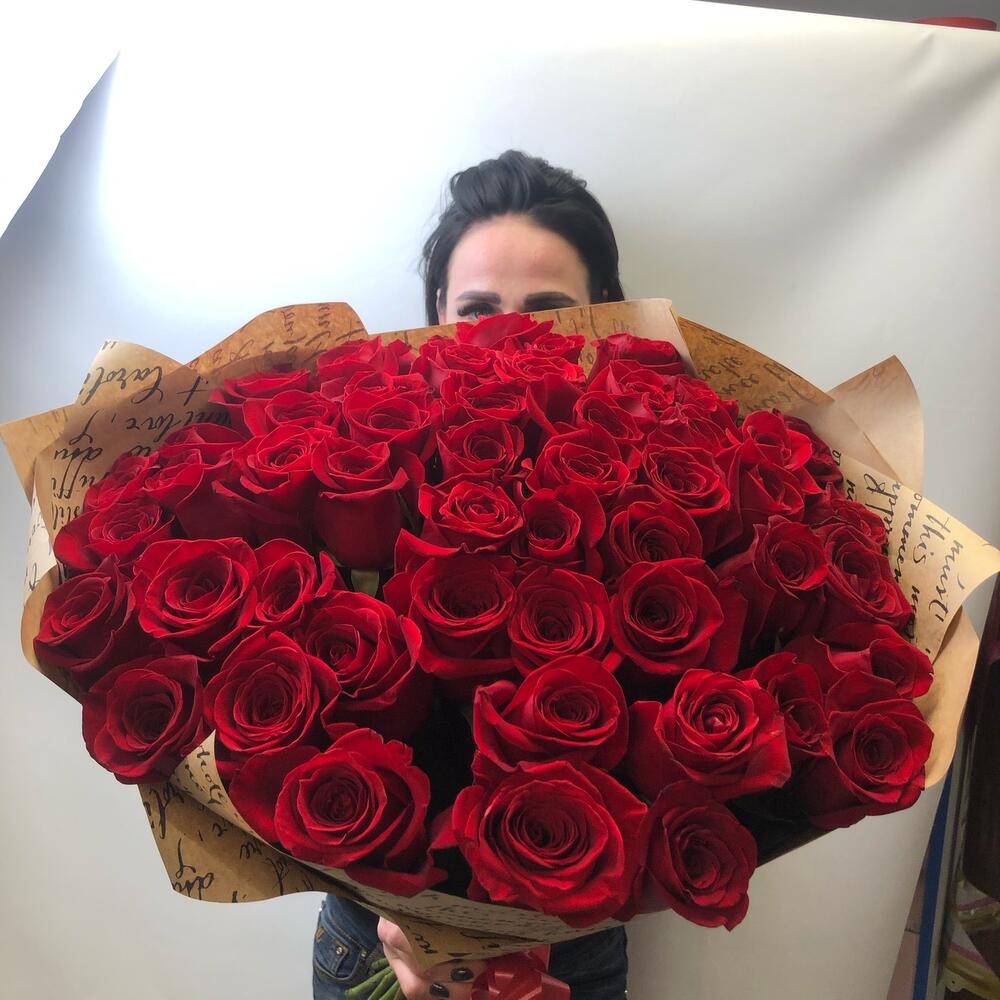 розы эквадор – 51 шт.Крафт – 2 шт.Лента – 1 шт.