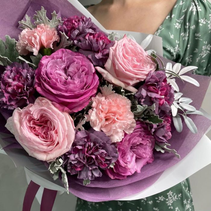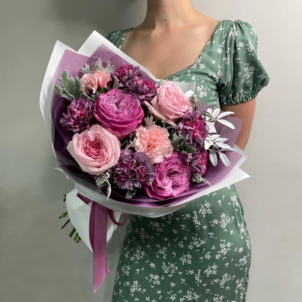 Гвоздики, Кустовые розы, Пионовидные розы, Розы