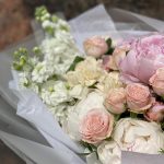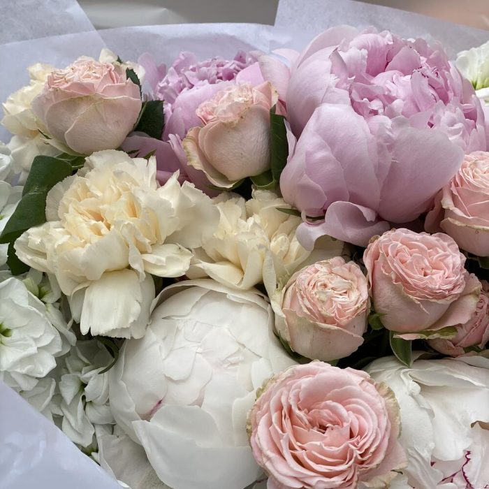 Торжественный букет с пионами и маттиолой