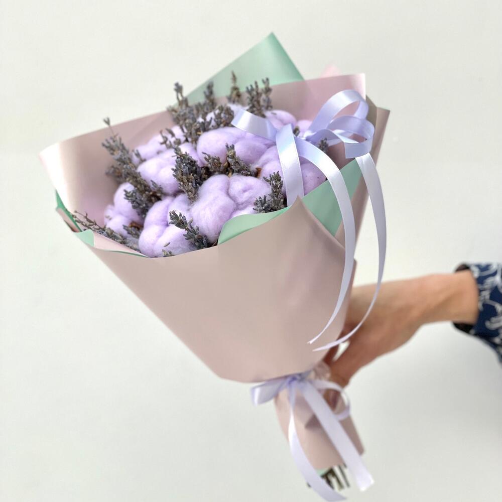Букет-облачко из хлопка и лаванды