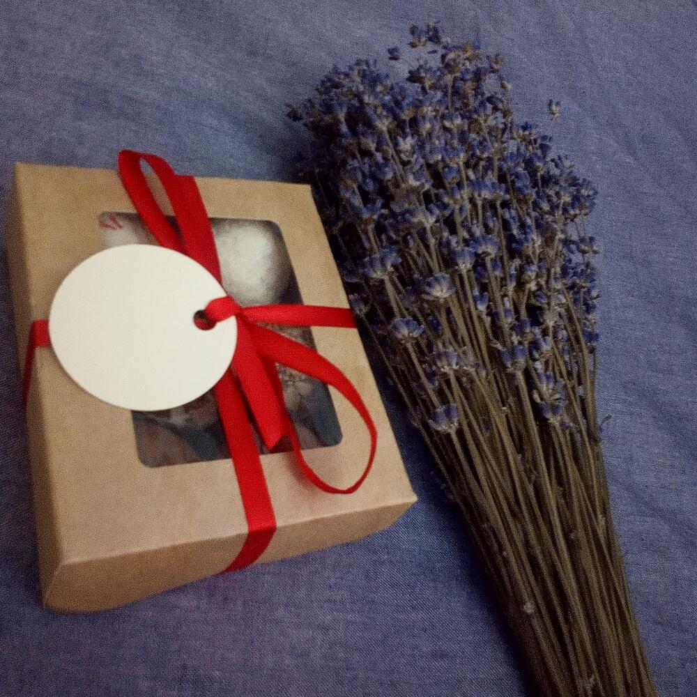 Лаванда (сухоцвет) – 69 шт.Лента – 1 шт.конфеты шоколадные ручной работы – 6 шт.