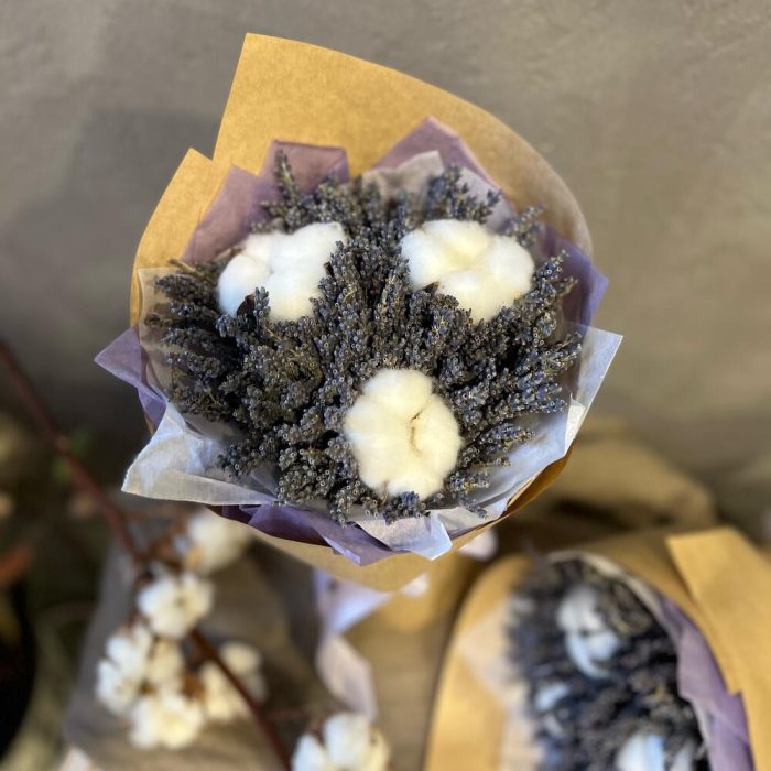 лаванда банч сухоцвет – 1 шт.Хлопок натуральный – 3 шт.Упаковка дизайнерская – 1 шт.
