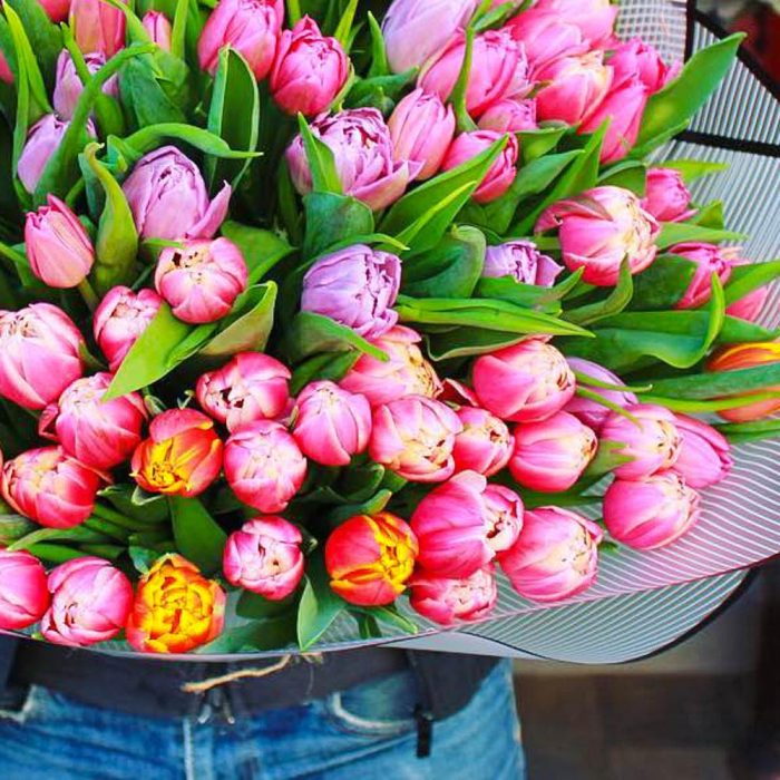 Тюльпан Голландский – 65 шт.Дизайнерская упаковка – 1 шт.Лента атласная – 1 шт.