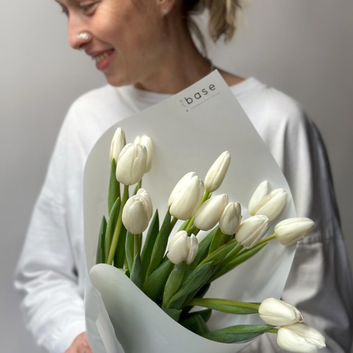 Монобукет из 15 классических белых тюльпанов