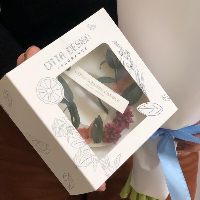 “Атлас☁️” – цветочная композиция с зефиром в деревянном ящике