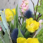 Дельфиниум – 2 шт.Тюльпан пионовидный – 5 шт.рябчик – 2 шт.ирландский колокольчик – 3 шт.тимофеевка – 5 шт.Ветки – 3 шт.Маттиола – 2 шт.Эрингиум – 1 шт.Эвкалипт – 3 шт.Лента атласная – 1 шт.