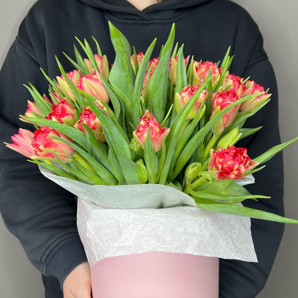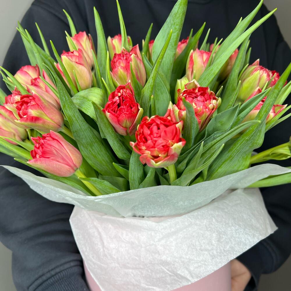 Тюльпан – 31 шт.комплимент от polyanka – 1 шт.Шляпная коробка – 1 шт.